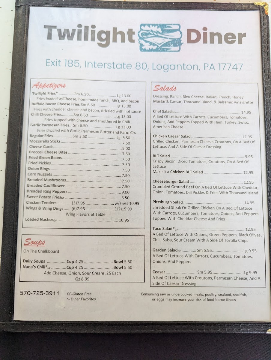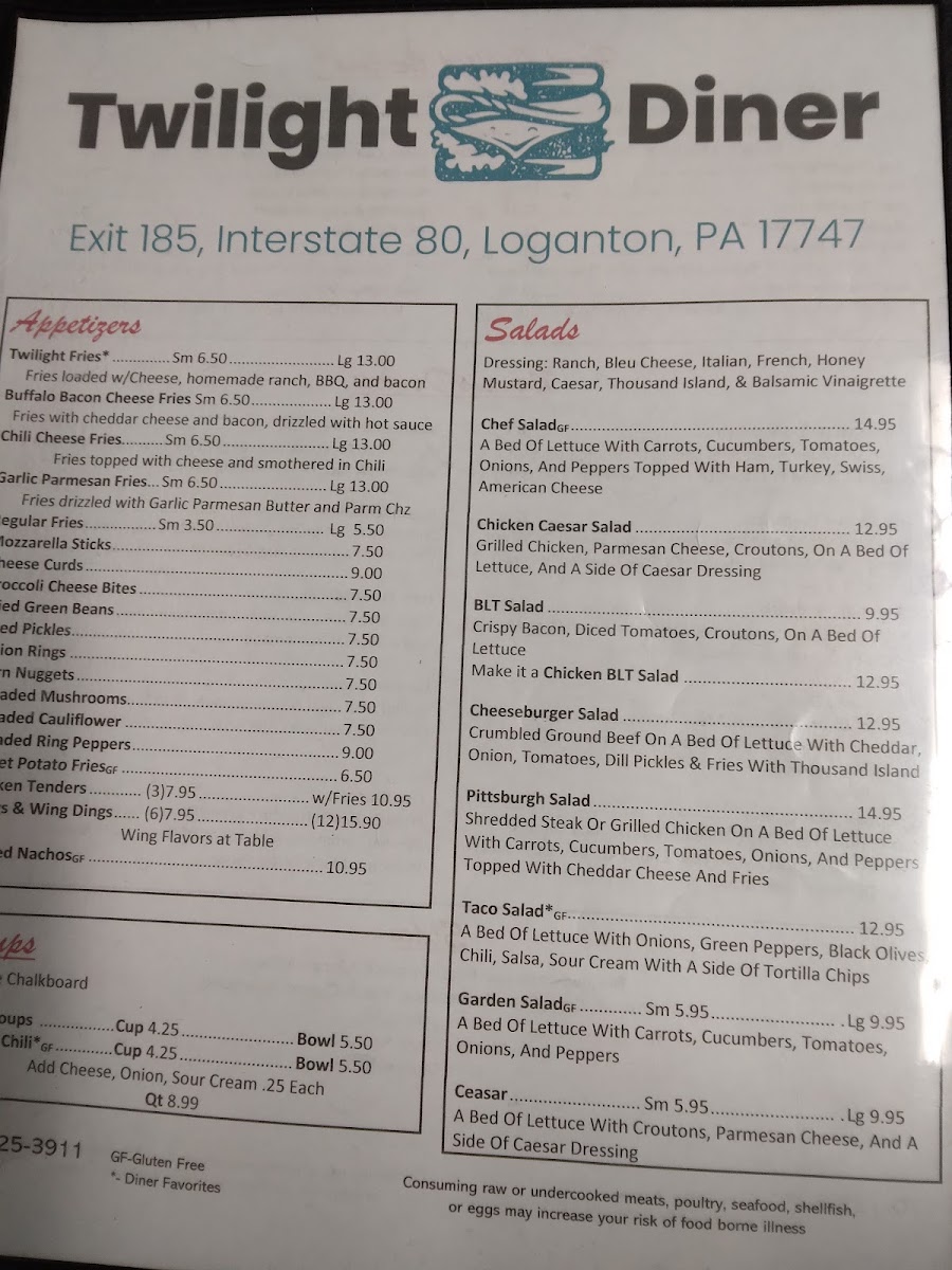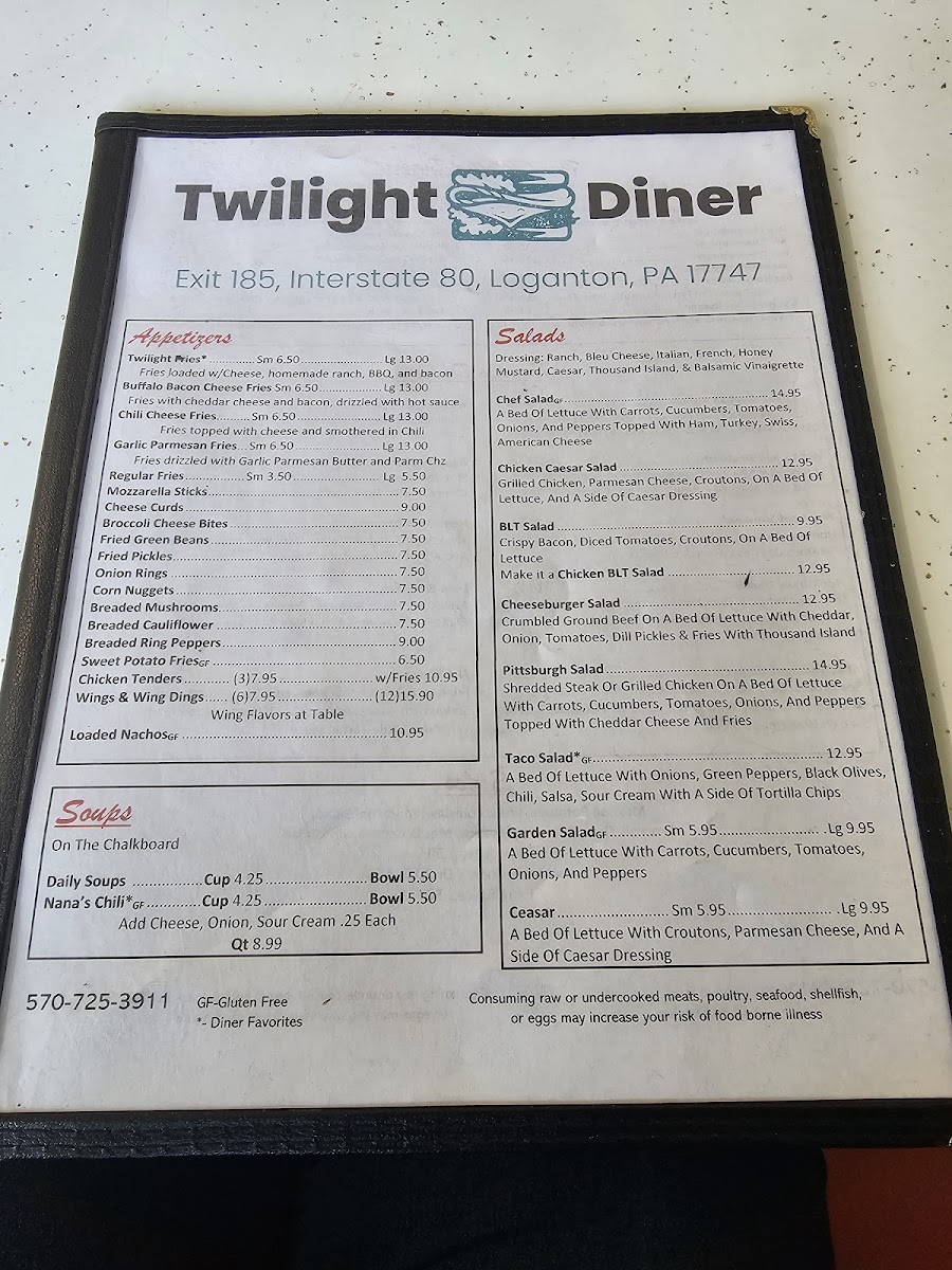 The menu at Twilight Diner offers a straightforward and comforting selection that suits a casual, small-town American diner experience. Whether you're stopping by for a hearty breakfast, a satisfying lunch, or a cozy dinner, the menu features familiar favorites crafted with generous portions and simple, classic flavors.